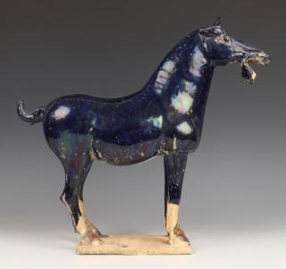 China, rolschildering en blauw geglazuurd keramiek paard in Tang-stijl, 20e eeuw.