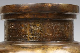 China, gedeeltelijk vergulde archaïstische bronzen wierookbrander, ding, Ming-dynastie,
