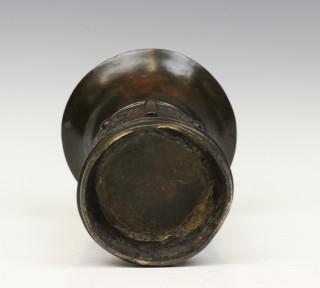 China, bronze archaistic vase, zun, modelled in relief with stylised dragons, 18th century, on wood stand