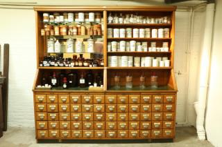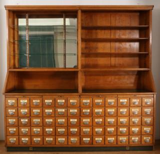 Eiken- en grenenhouten apothekerskast, ca. 1950,