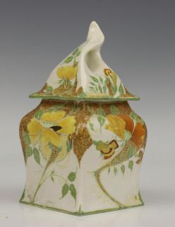 Haagsche Plateelfabriek Rozenburg Den Haag, eierschaal porselein dekselpot,
