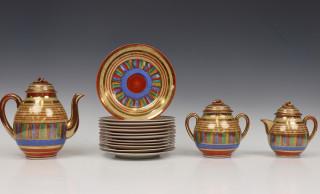 bestaande uit achttien kop- en schotels, theepot, suikerpot, melkkan, dekselpot met schotel en twaalf gebakschotels.