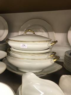 Frankrijk, wit porseleinen servies met vergulde bies, Limoges,