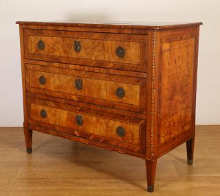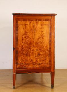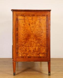 Iepenwortel-, satijn- en rozenhouten commode, Louis XVI.