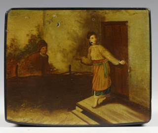Rusland, theekistje in de de stijl van Stobwasser, 19e eeuw,