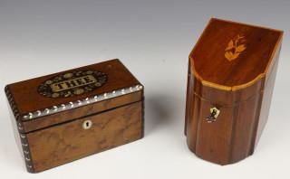 Noten- en wortelnoten gefineerde houten theekistje, 19e eeuw,