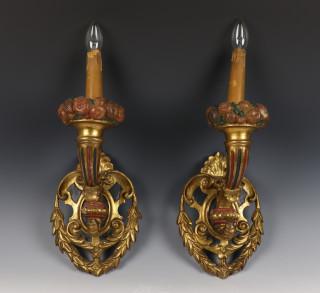 Een paar verguld houten één lichts wand appliques, ca. 1900,