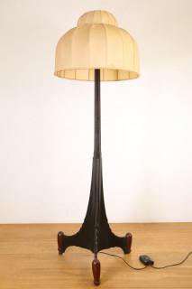 Zwart gebeitst houten staande schemerlamp, art deco,