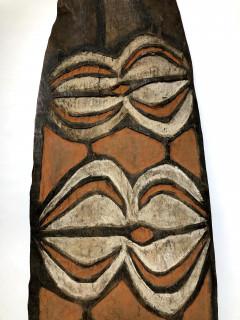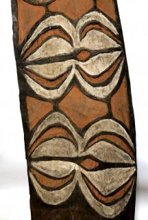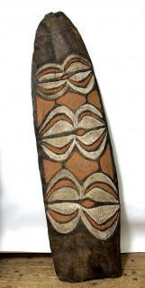 Papua, Asmat, Citak, small war shield, samas, with curved and straight motivs in white and red on a red ground