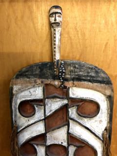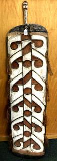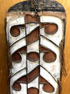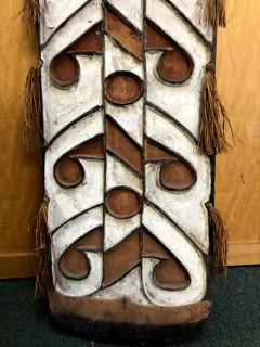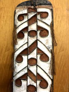 Papua, Asmat, small and narrow shield, raised lines in black on a red and white ground