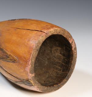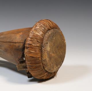 Papua, Humboldt Bay, drum of hourglass shape, the lower part decorated and blackened, plant fibre band