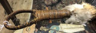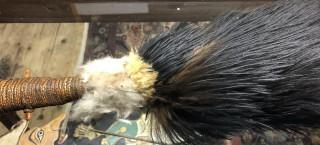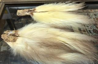 Papua, two white plume ornaments and a ceremonial tassel made of casuary feathers and plaited plant fibre handle