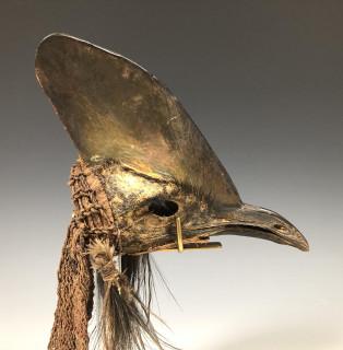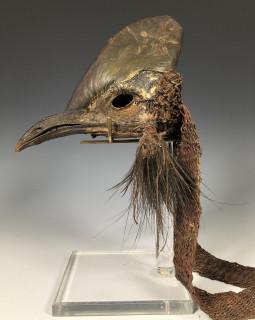 Papua or PNG, warrior's attribute, being a cassowarry bird casque on a plaited plant fibre strap, early 20th century.