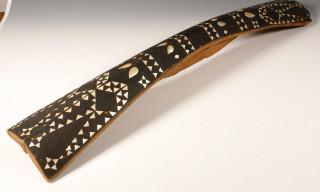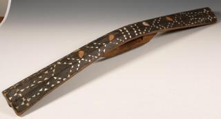 Indonesia, Moluccas, Halmahera, two parry shields, both with mother-of-pearl inlay, one with shell