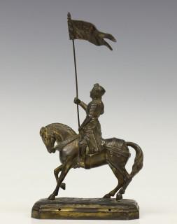 Een zamak sculptuurtje voorstellende Jeanne d'Arc, 19e eeuw,