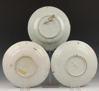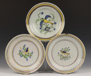 Drie polychrome aardewerken schotels, 18e eeuw,
