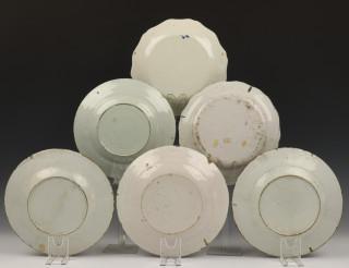 bestaande uit een paar blauw-en groengeglazuurde borden, een paar florale schotels en vier verschillende gedecoreerde borden (chips en frits)