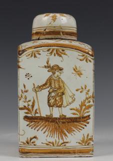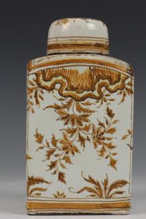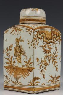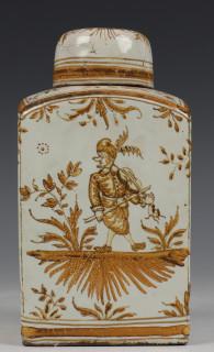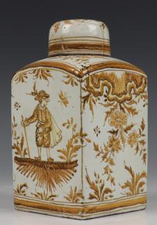 Mogelijk Delft, aardewerken theebus, mogelijk 18e eeuw,