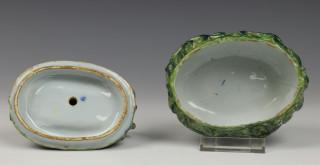 Delft, De Porceleyne Bijl, paar polychroom aardewerk terrines, 18e eeuw,