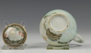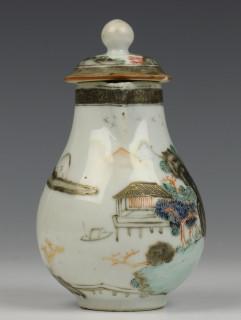 met fijn geschilderd decor rondom van landschap (twee flintertjes aan deksel)