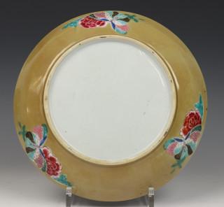 met decor van kostbaarheden, rand met vergulde cartouches, de buitenrand cafe-au-lait.
