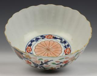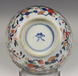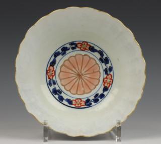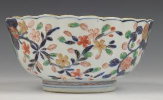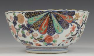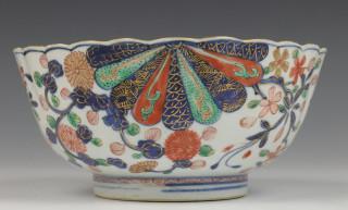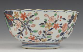 met Imari en famille verte Japans decor van 'mon' en bladranken. Gemerkt met kostbaarheid (minieme randschilfers, bakfoutje aan rand en standring)
