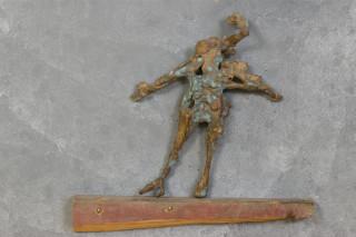 brons en hout, verso gesign., 82 x 37 cm.