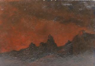 board, niet ingelijst, vers etiket tentoonstelling met signatuur, 34 x 50 cm.