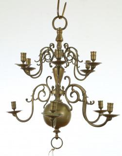 Messing en verguld bronzen twaalflichts kaarsenbolkroon, 19de eeuw,