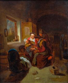 Boerenfamilie in een interieur