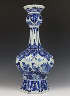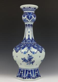 De Porceleyne Fles, kapitale blauw-wit aardewerk knobbelvaas, 20e eeuw,