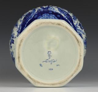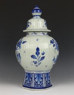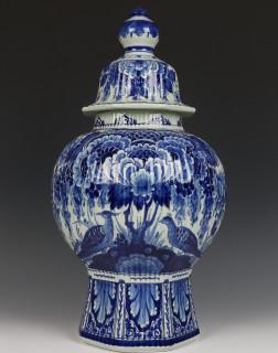 De Porceleyne Fles, blauw-wit aardewerk dekselvaas, jl. 1955