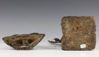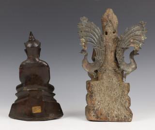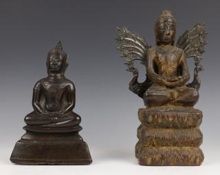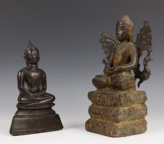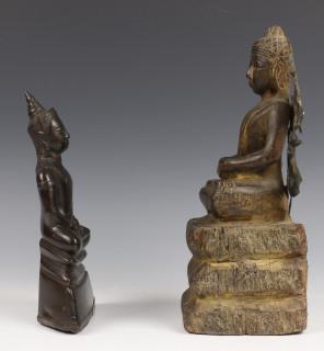 Bruin gepatineerd antieke bronzen Boeddha en houten Boeddha,
