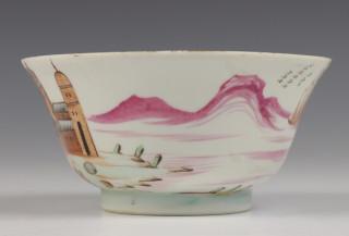 China, twee polychrome porseleinen wapenschoteltjes en een Meissen-stijl kom, 18e/19e eeuw,