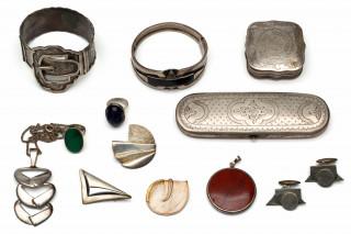 Diverse zilveren en onedele sieraden en objets-du-vertu