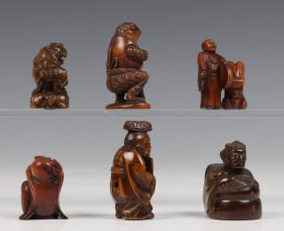 Japan, zes buxushouten netsuke, 19e-20e eeuw,