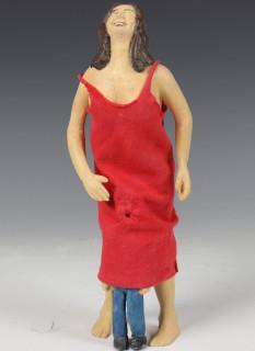hout, textiel en verf, ongesign., h. 100 x 27 cm.