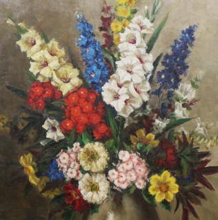doek, gesign. r.o., 90 x 76 cm. en reproductie, 30 x 40 cm.
