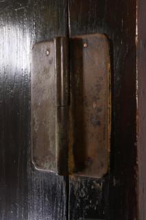 in twee verdelingen. De bovenkast met twee deuren. De onderkast met twee deuren. De deuren met messing slotplaten en -scharnieren. Vormt een paar met lotnummer 6516