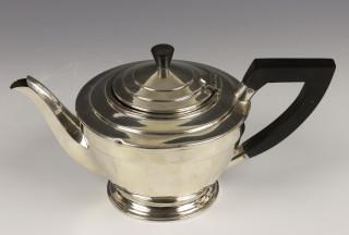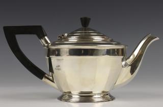 rond met gefacetteerde buik en tuit, afgevlakt voluutvormige houten greep en bekervormige houten dekselknop, mt. Collingwood & Sons Sheffield 1935, 1e gehalte. (deukjes)