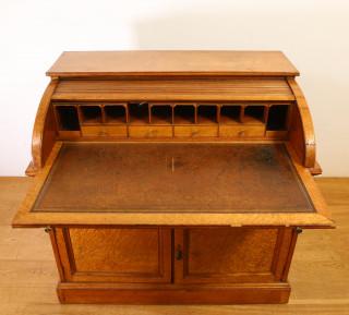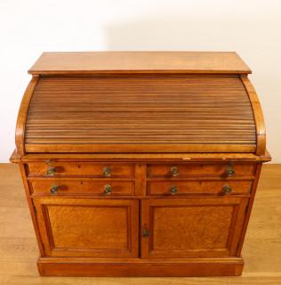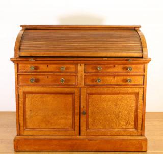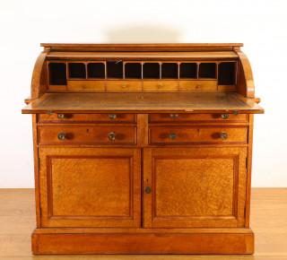 Engeland, esdoorhouten ofwel 'birds eye maple' rolbureau, Regency- overgang William IV, ca. 1840,