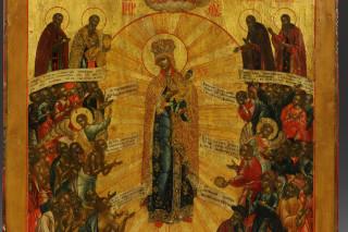 Moeder Gods Vreugde aller Lydenden, verguld fond. Omgeving Moskou. Met rapport door ikonenatelier Meteora, 1996