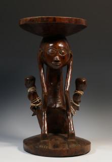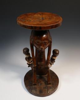 DRC, wooden caryatid stool, local repairs