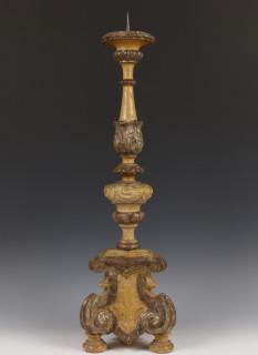 Deels wit en zilver gelakt houten penkandelaar in Barok stijl