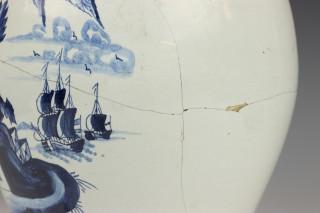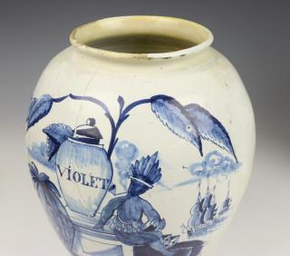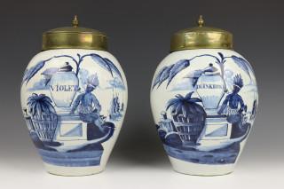 Delft, De 3 Klokken, paar blauw-wit aardewerk tabakspotten, 18e eeuw,