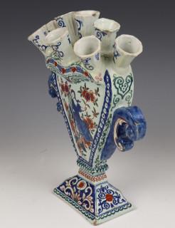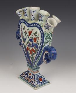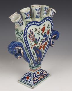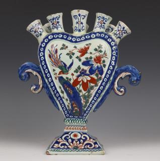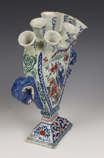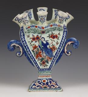 Delft, De Paeuw, polychroom aardewerk tulpenvaas, 18e eeuw