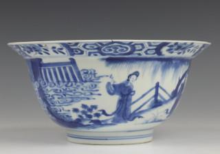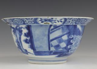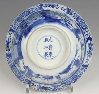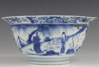 China, blauw-wit porseleinen klapmutskom, Kangxi,