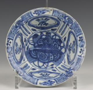 China, blauw-wit porseleinen zgn. 'klapmuts', Wanli, 17e eeuw,