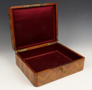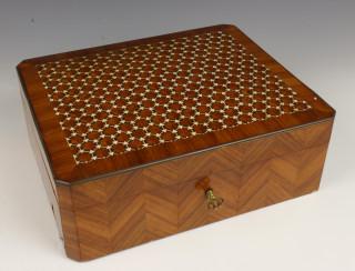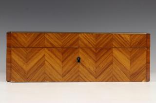 Met satijnhout belegde bijouskist, 19e eeuw,