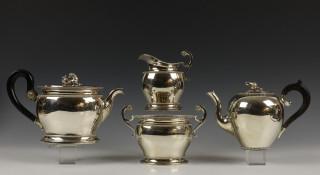 Driedelige theeservies en bijgevoegde theepot, Empire stijl, 19e eeuw,